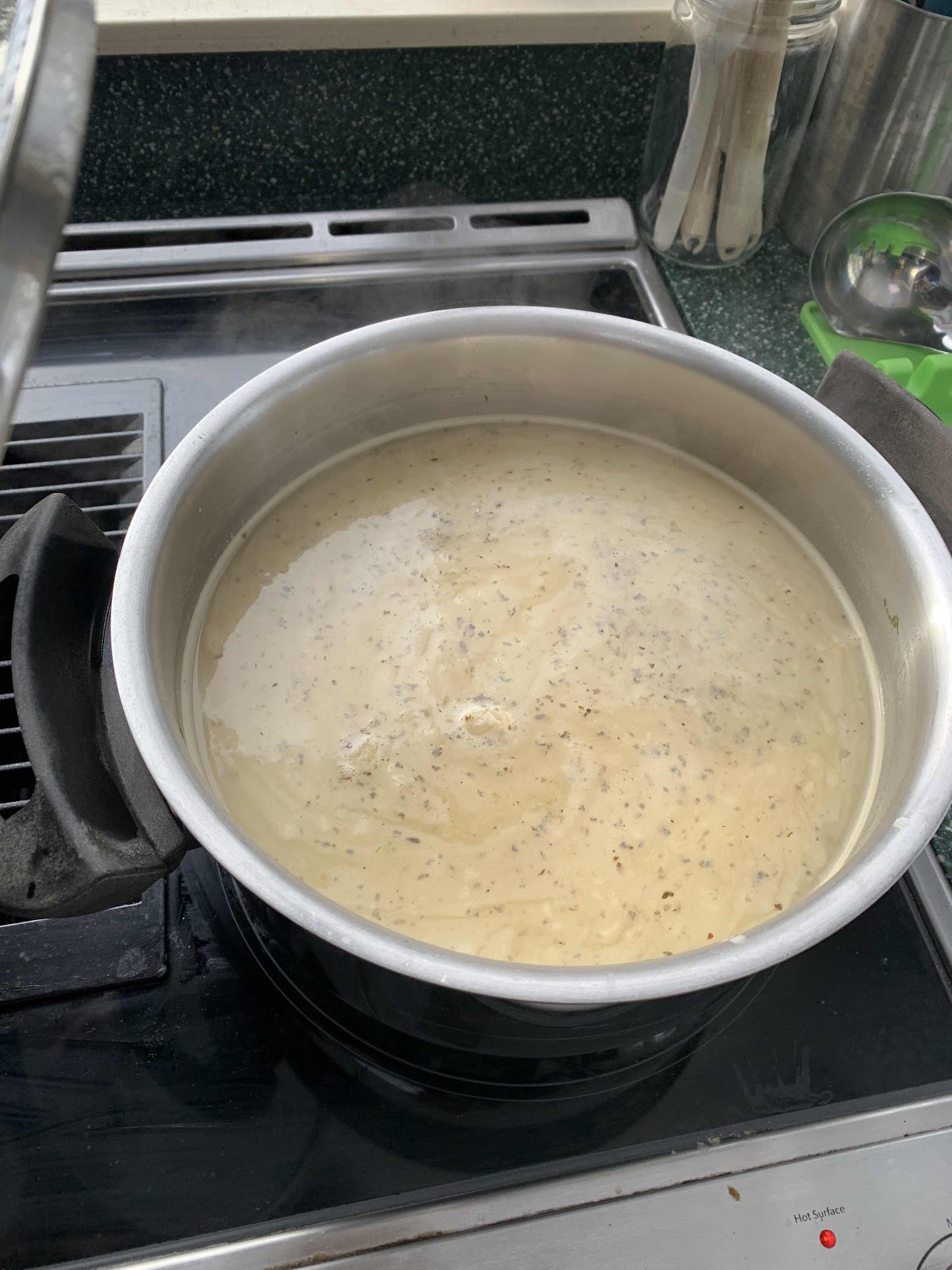 Open and drain one can into a high speed mixer together with the garlic and a few scoops of boiling stock. Blend and add into the soup. Blend it all with a hand blender. Add the second drained can of beans as whole and add the 10 spice mix. Soo yummy!